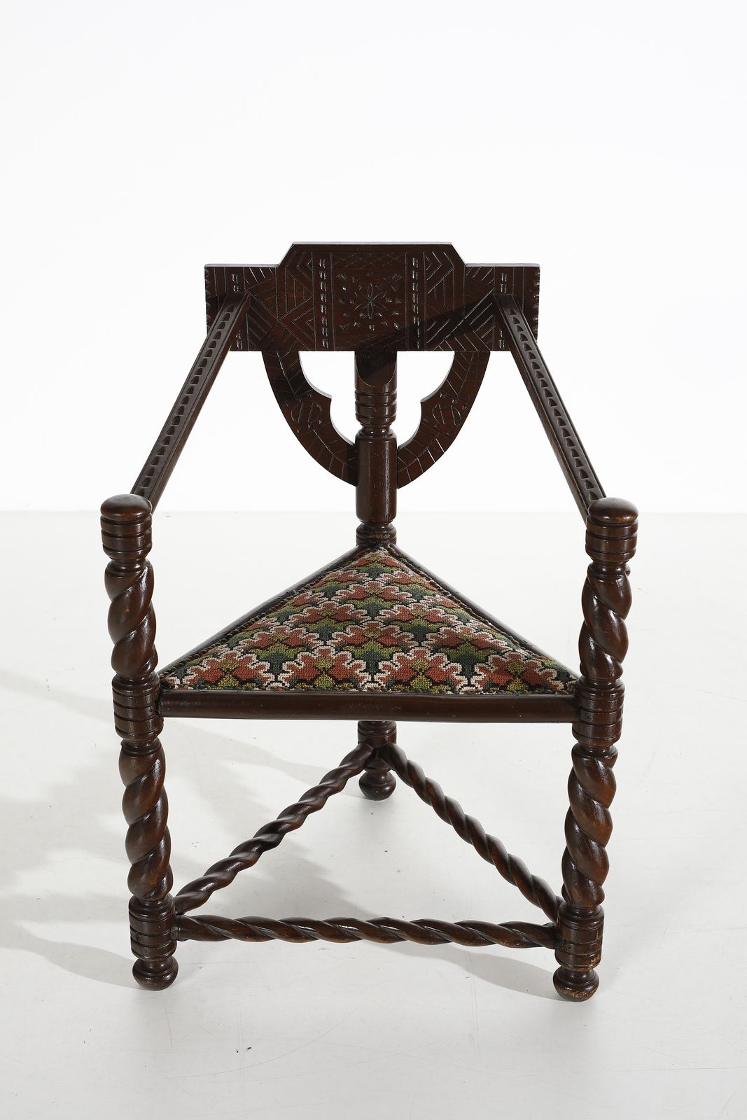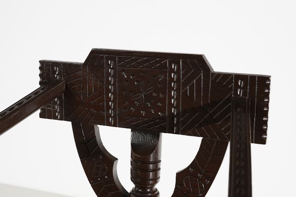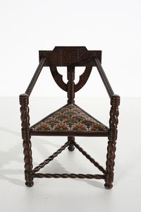 MANIFATTURA NORVEGESE Poltroncina. Legno e tessuto imbottito.. Cm 86x61x52. anni Trenta.