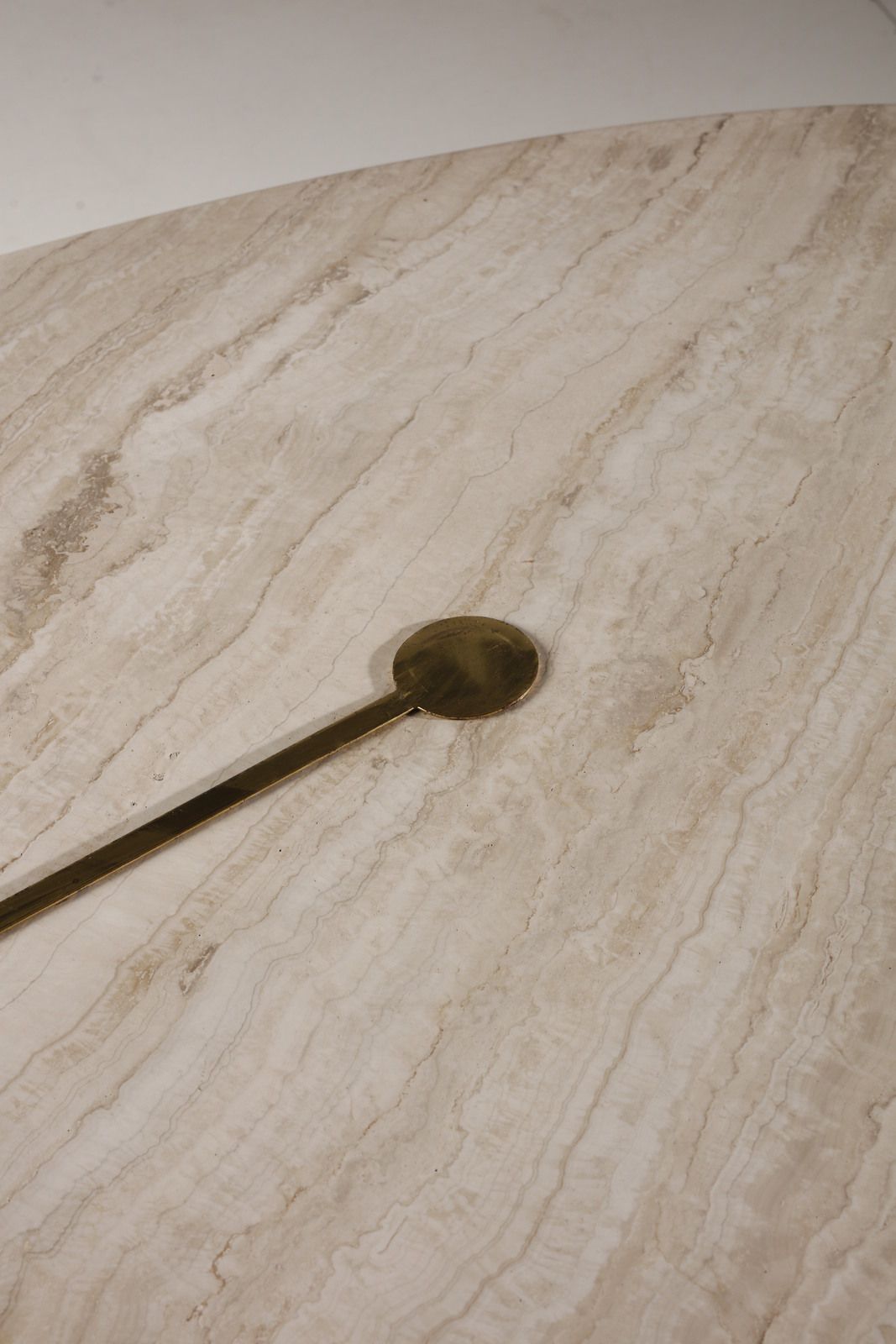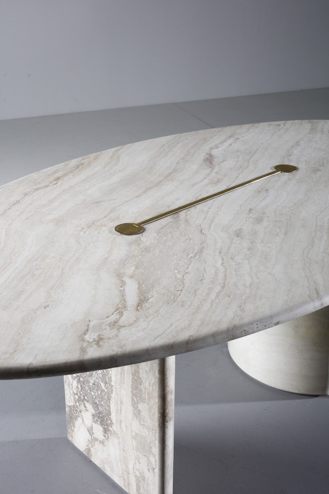 CARDIN PIERRE (n. 1922) Tavolo per Stone International. Travertino e ottone. . Cm 73x200x110. anni Settanta.