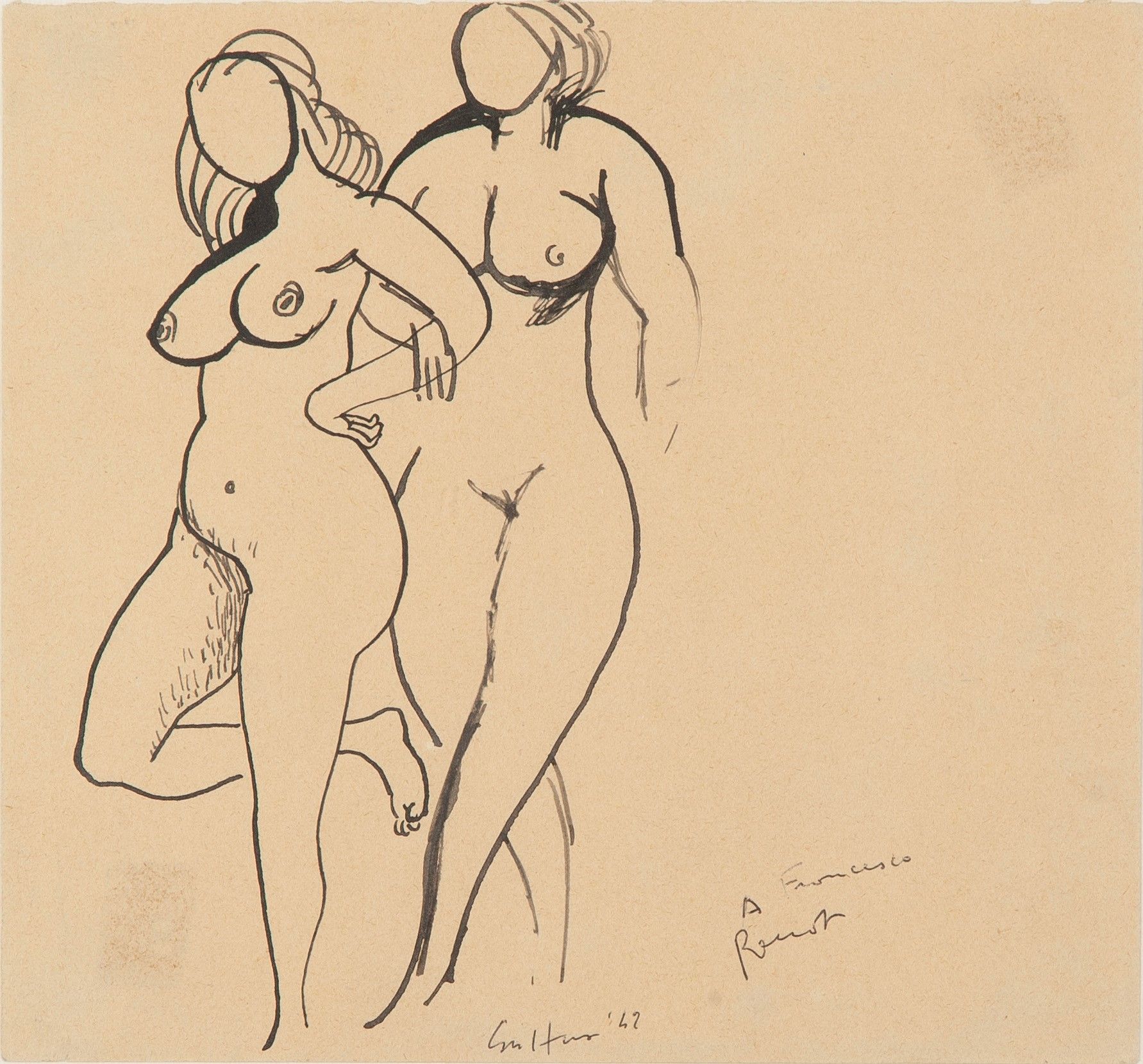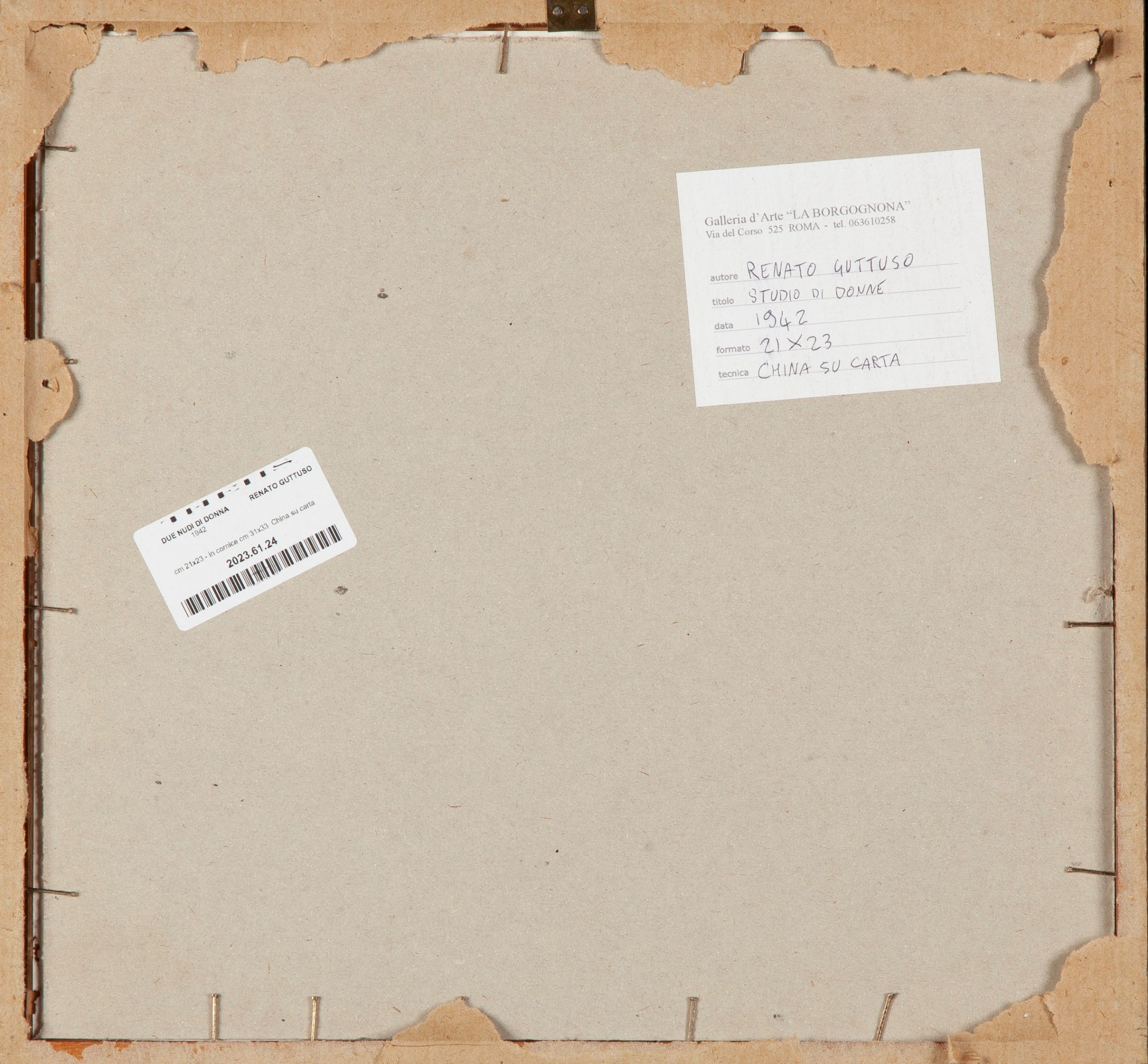 1942 Firma, data e dedica Guttuso '42 / A Francesco / Renato. Etichetta della Galleria La Borgognona, Roma