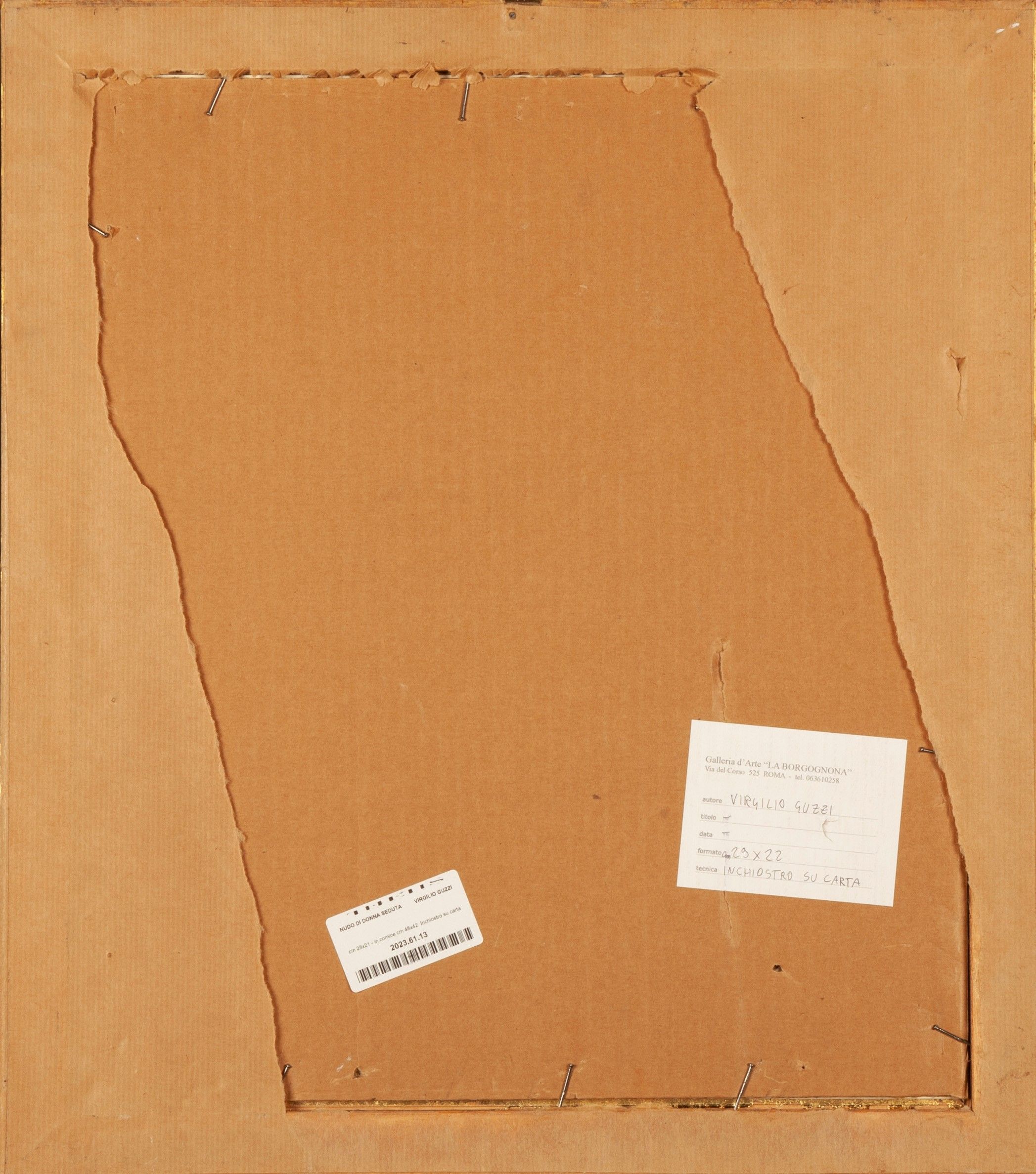 Firma in basso a destra Virgilio Guzzi. Al verso reca etichetta della Galleria La Borgognona, Roma