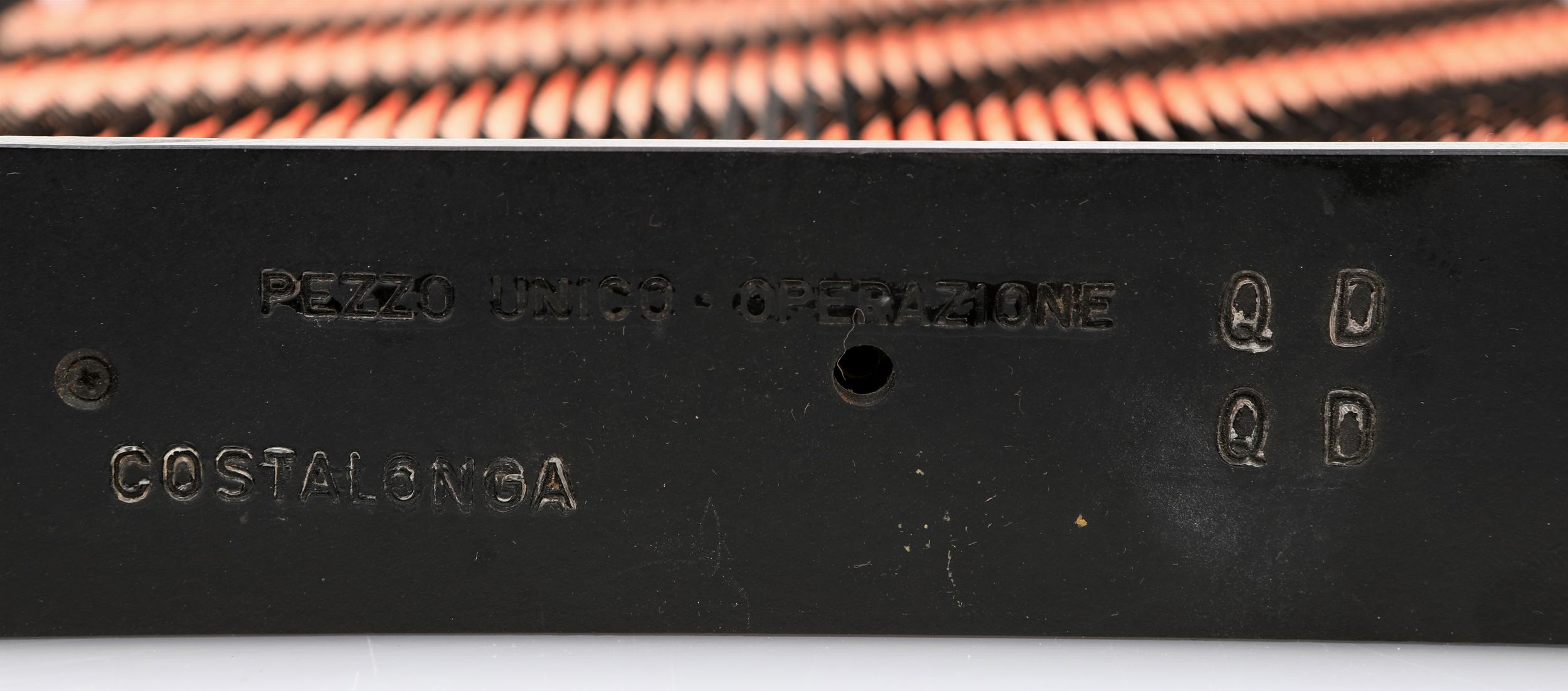 Firma e numerazione incise Costalonga / Pezzo Unico / Operazione. Sotto la base etichetta con titolo e firma a penna dell'artista.