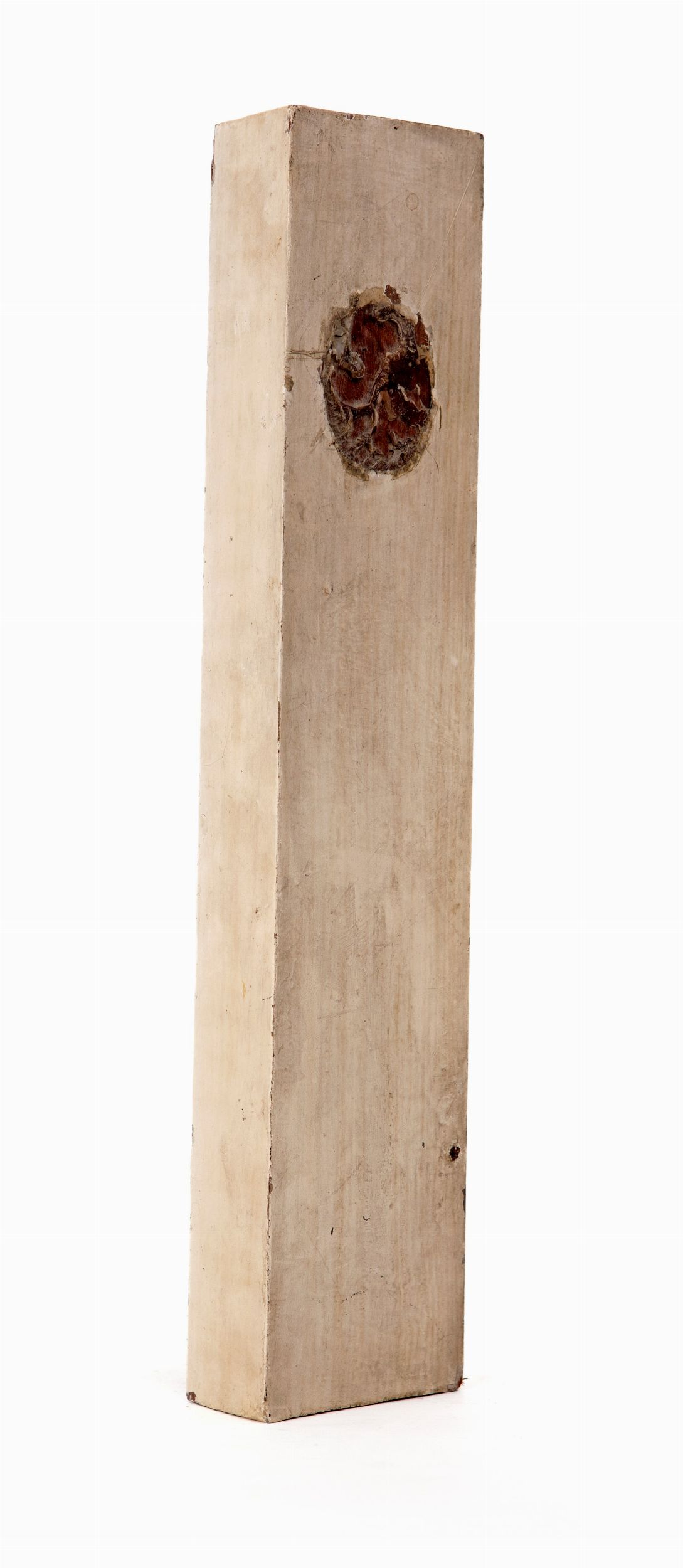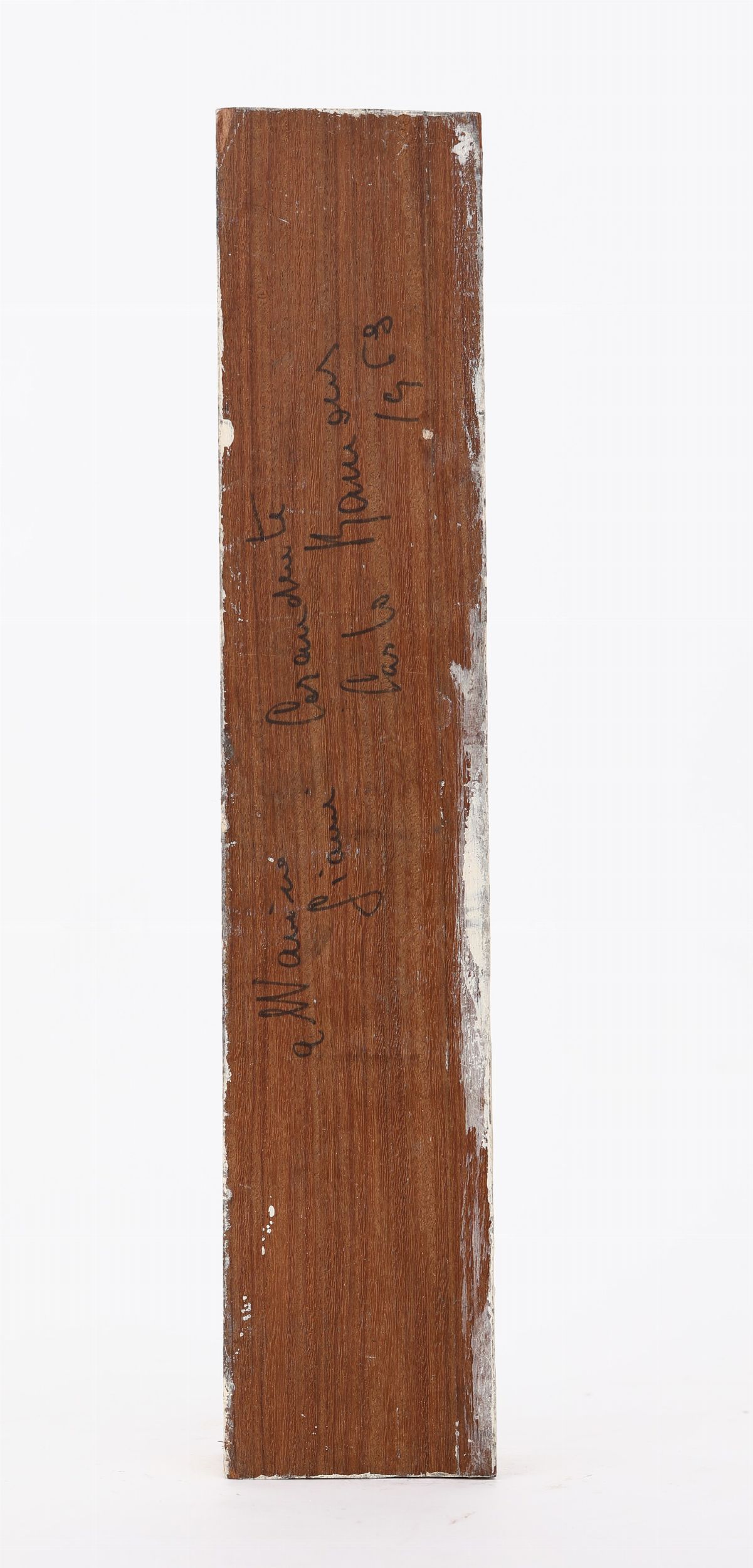 Scultura in legno dipinto e cera, cm 39x7,5x4