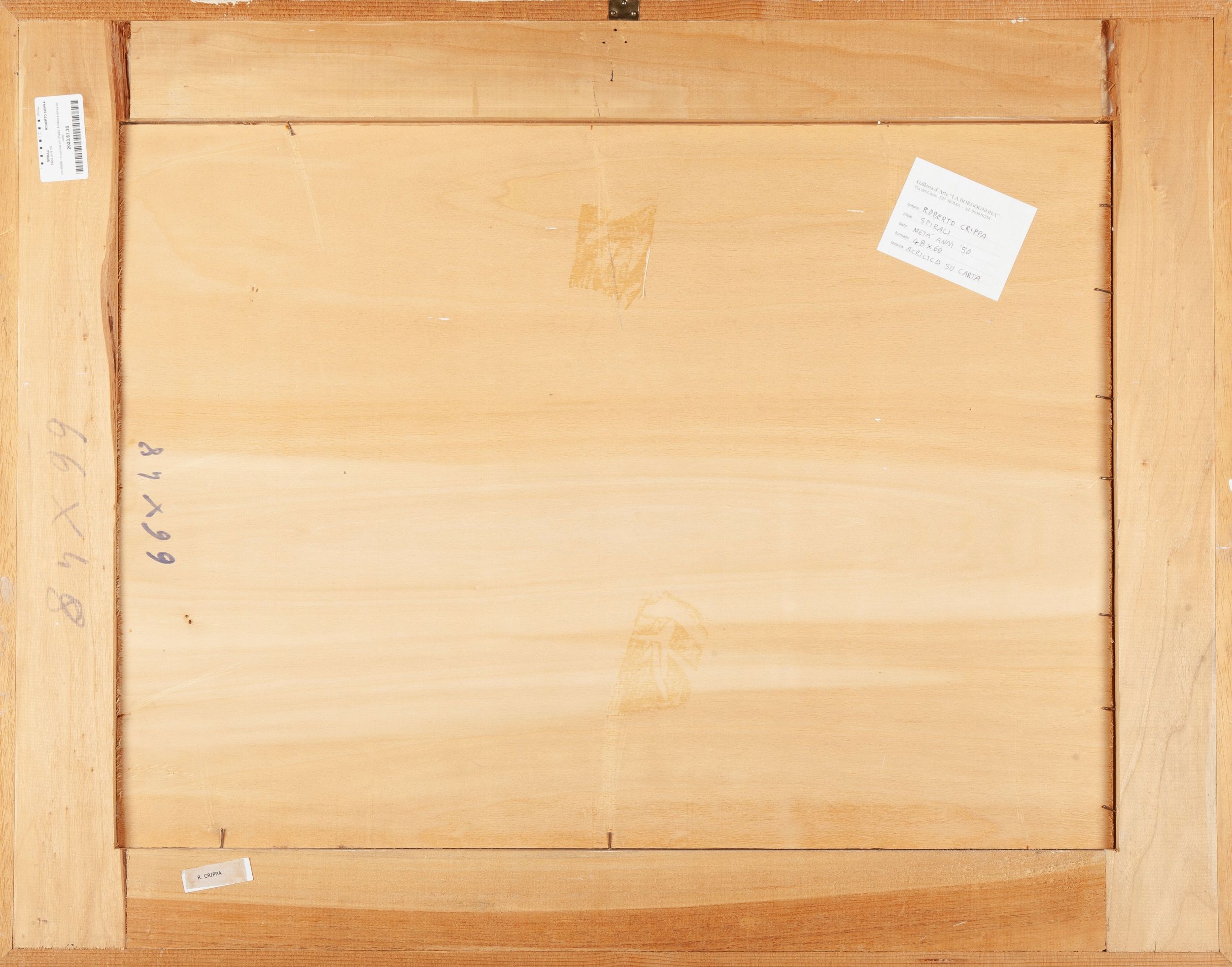 Metà anni '50 Firma in basso a destra R.Crippa. Al verso reca etichetta della Galleria La Borgonona, Roma