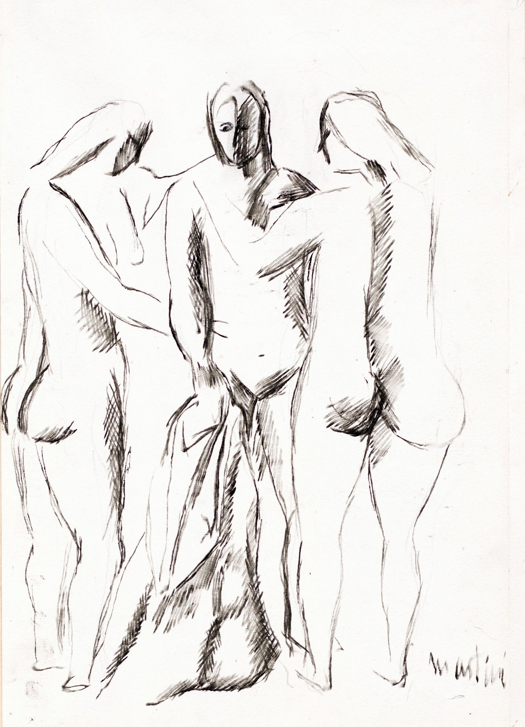 Carboncino e inchiostro su carta, cm 33x23 - in cornice cm 59x46