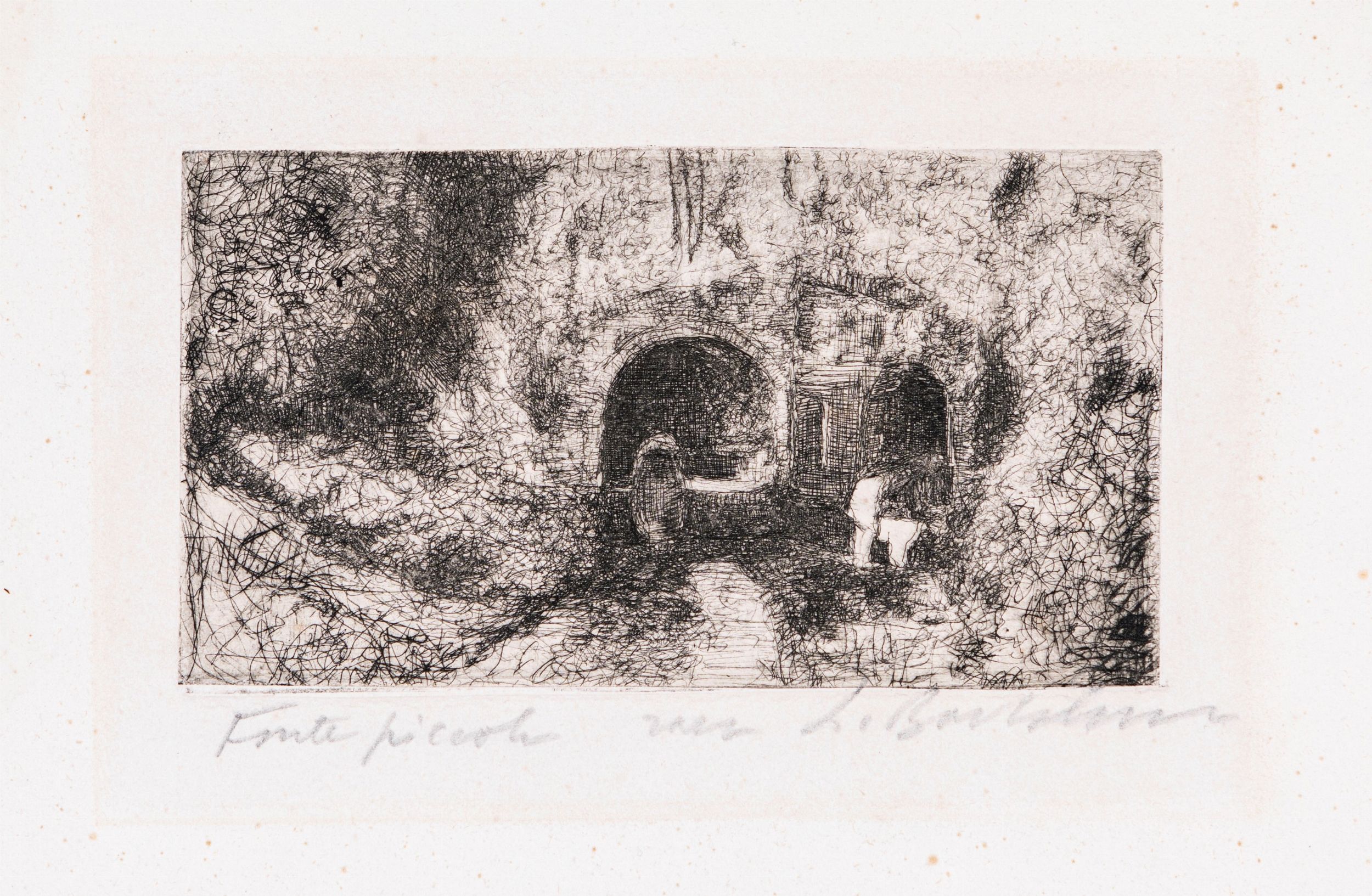 Firma, titolo e numerazione sul fronte Luigi Bartolini, Fonte Piccola, Unico. Timbro a secco in basso a destra Luigi Bartolini all'Acquaforte Incisore.