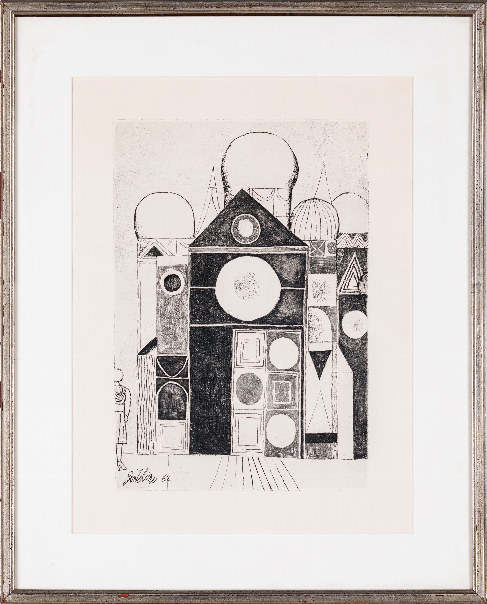 1962 Firma e data in lastra Gentilini '62. Misure in cornice cm 52x42