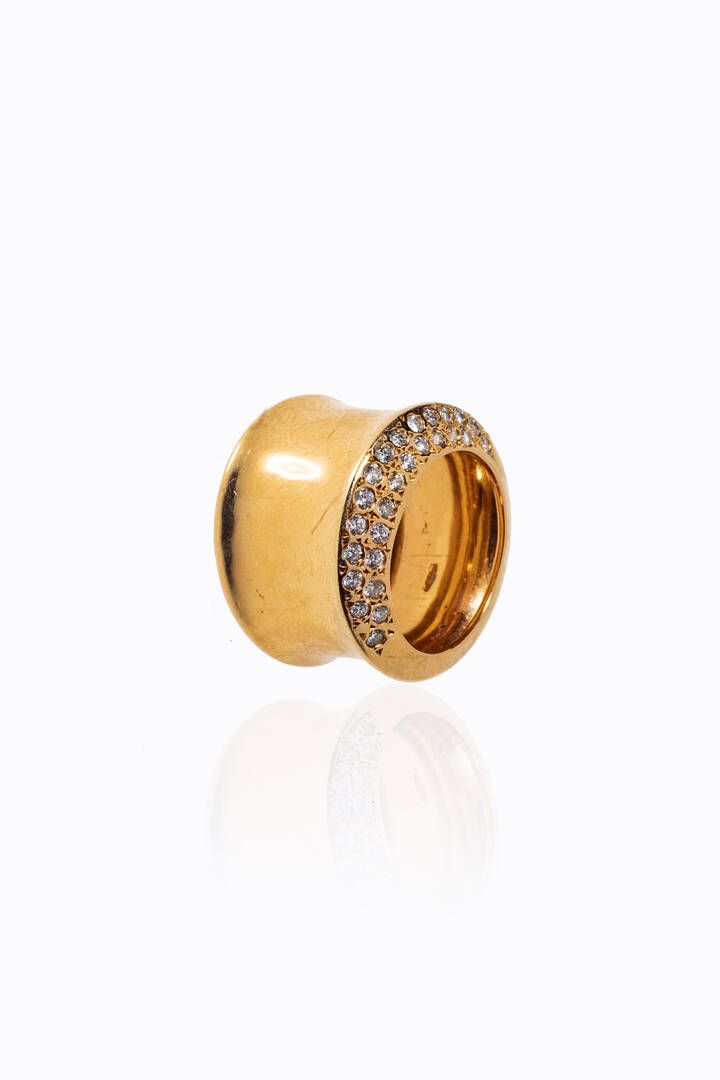ANELLO Peso gr 18 Misura 10 (50) in oro rosa, a fascia concava al centro, Bordo esterno decorato con diamanti taglio brillante per totali ct 0,30 ca, probabile colore G-H, purezza IF-VVS. L'anello apparteneva alla collezione privata di Marina Ripa di Meana e venne da lei indossata in molte occasioni pubbliche.