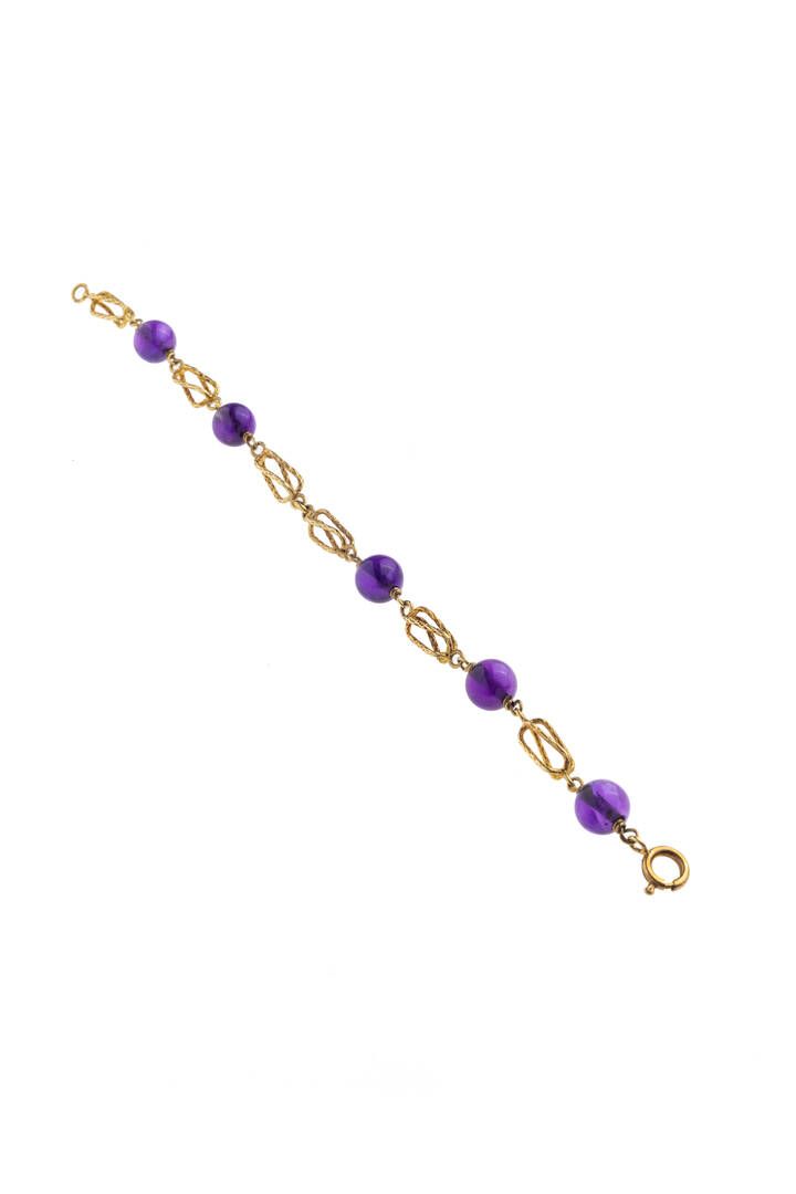 composto da segmenti cilindrici intrecciati e satinati, alternati a sfere in ametiste del diam di mm 8