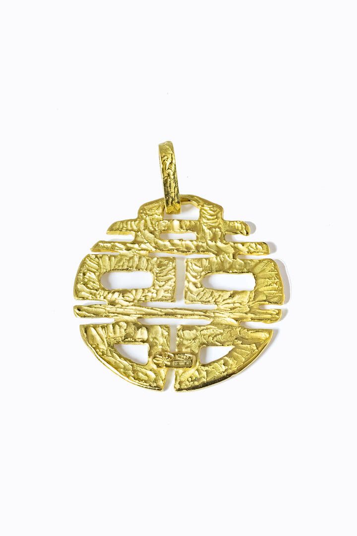in oro giallo, di forma rotonda, lavorato a corteccia