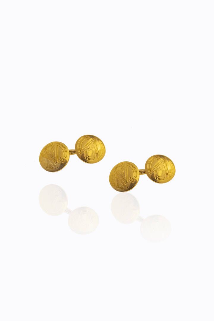 in oro giallo, sommità rotonda, con incise le lettere 'M-R'
