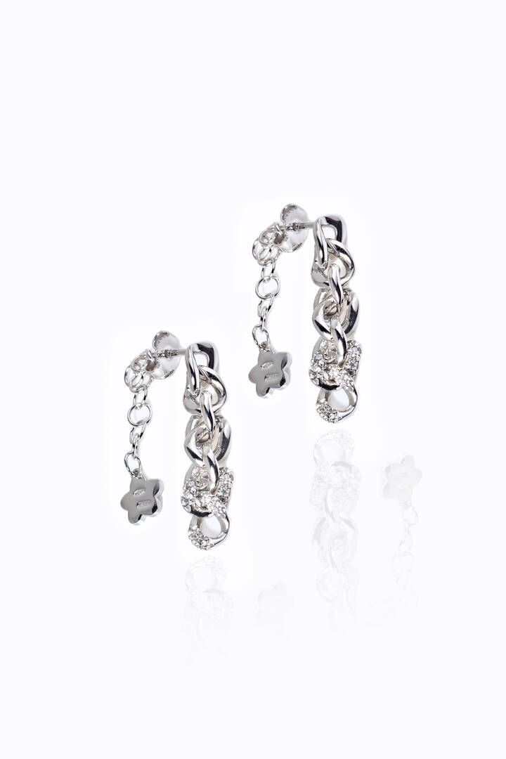 in oro bianco, con maglie groumette pendenti ed impreziosite da diamanti taglio brillante per totali ct 0,28 ca, probabile colore G-H, purezza IF-VVS