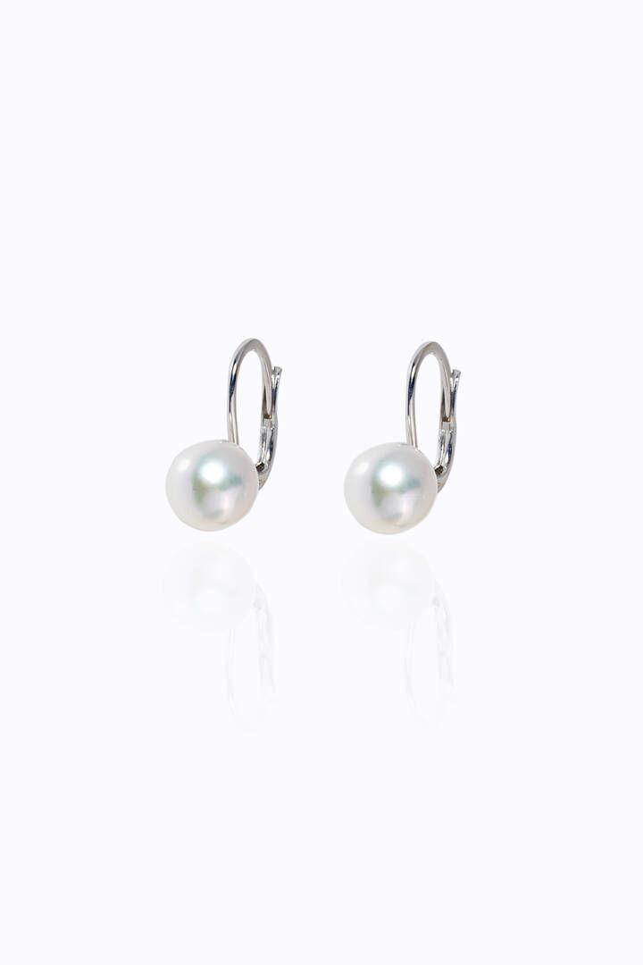 in oro bianco, a monachella, con due perle giapponesi del diam. 7 mm