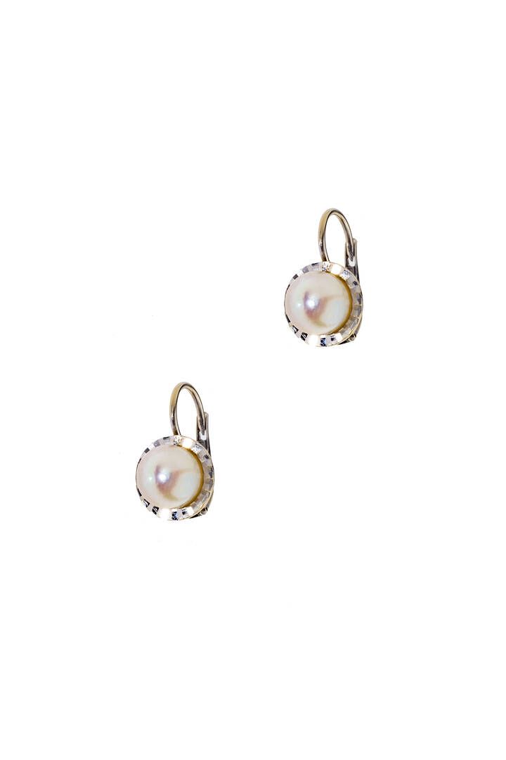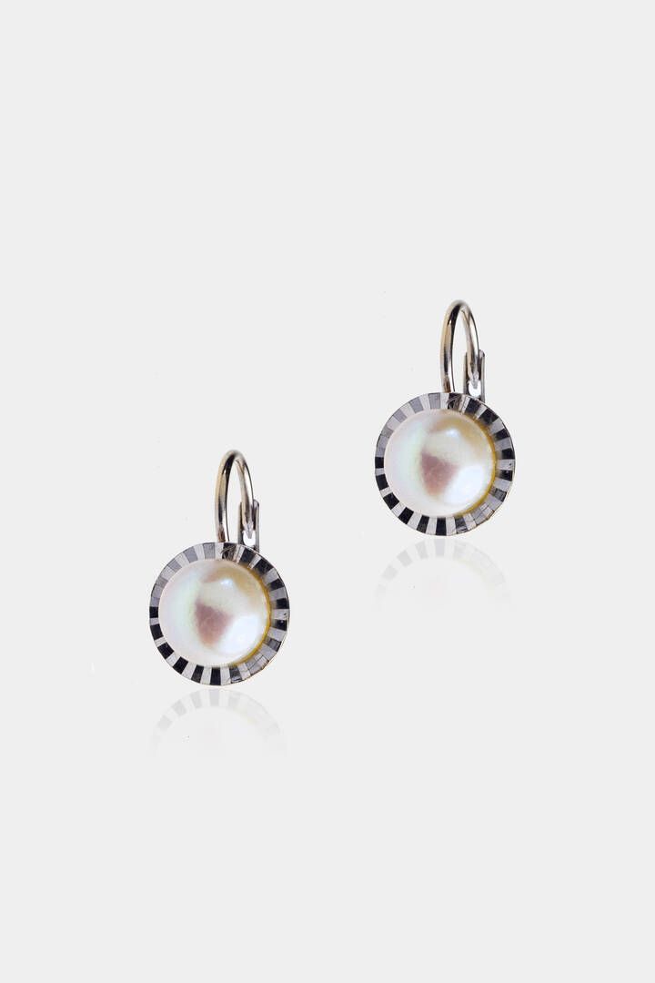 in oro bianco, a monachella, con due perle giapponesi del diam di mm 7 ca