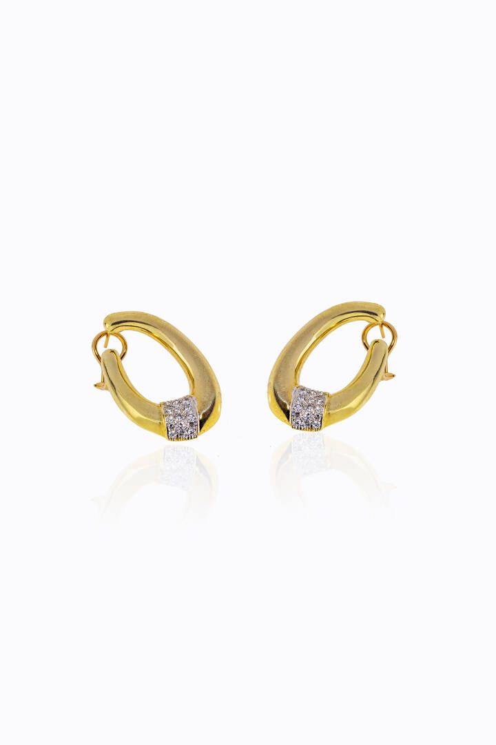 in oro giallo e bianco, a cerchio ovalizzato, con inserti centrali in diamanti taglio brillante per totali ct 0,60 ca