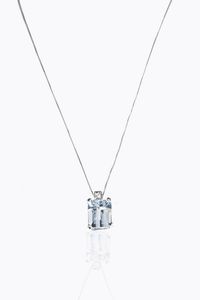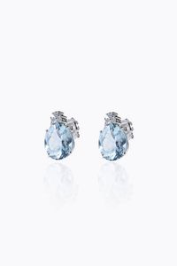 COPPIA DI ORECCHINI Peso gr 5,0 in oro bianco, con due acquamarine taglio ovale per totali ct 7,50 ca, sormontate [..]