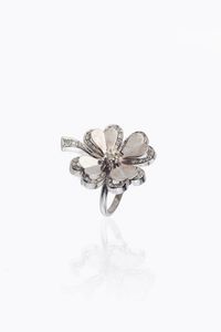 SPILLA Peso gr 9,3 Diam. cm 3,5 in oro bianco, a forma di fiore, inizi XX secolo, con diamanti di vecchio per [..]