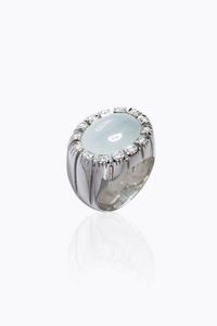 ANELLO Peso gr 14,9 Misura 12 (52) in oro bianco, sommità con acquamarina milk taglio cabochon, contornata da [..]