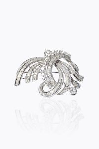 SPILLA Peso gr 16 Cm 5x3 in oro bianco, anni ’50, a forma di voluta, interamente in diamanti taglio brillante [..]