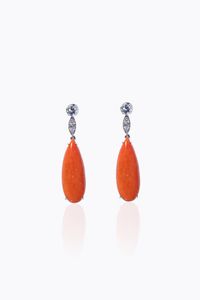 COPPIA DI ORECCHINI Peso gr 9,3 pendenti, in oro bianco, con due gocce di corallo color salmone nei toni del color [..]