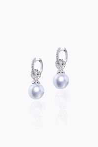 COPPIA DI ORECCHINI Peso gr 4,8 in oro bianco, a monachella, con due perle giapponesi del diam. di mm 9 ca e due [..]