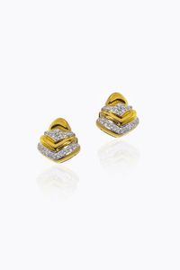 COPPIA DI ORECCHINI Peso gr 19,8 in oro giallo, a lobo, di forma triangolare, bombati, con fasce lisce alternate [..]