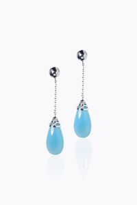 COPPIA DI ORECCHINI Peso gr 16,7 in oro bianco, con gocce di agata azzurra e diamanti taglio brillante per totali [..]