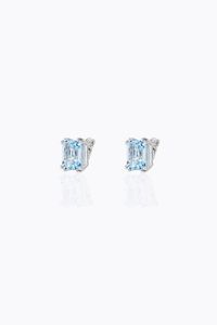 COPPIA DI ORECCHINI Peso gr 3,0 in oro bianco, a lobo, con due acquamarine taglio ottagonale a gradini per totali [..]