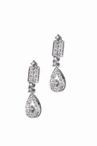 COPPIA DI ORECCHINI Peso gr 2,8 in oro bianco, a monachella, con gocce in pavé di diamanti taglio brillante per [..]