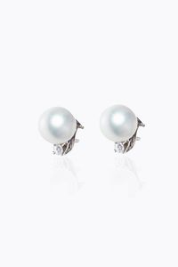 COPPIA DI ORECCHINI Peso gr 19,1 in oro bianco con due perle australiane del diam di mm 16,5 ca, sormontate da [..]