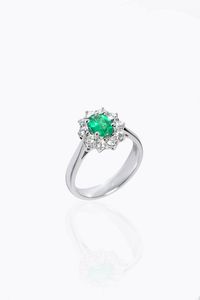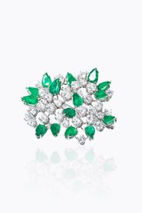 LOTTO DI DUE SPILLE -in oro a bassa caratura. XIX secolo, di forma ovale con al centro smeraldo taglio ottagonale [..]