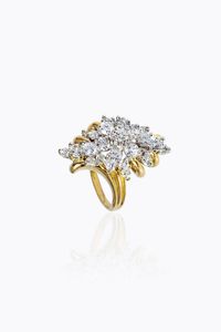 LOTTO DI TRE ANELLI -in oro giallo, anni '40, a forma di voluta e gemme sintetiche. Peso gr 3,9. Misura 9 (49). [..]