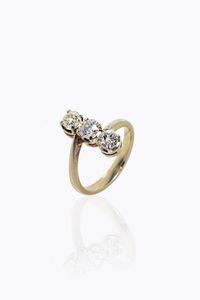 LOTTO DI TRE ANELLI -in oro giallo ed argento XIX secolo, modello contrarié, con uno zaffiro taglio rotondo ed [..]