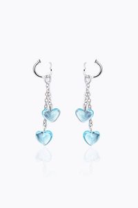 COPPIA DI ORECCHINI Peso gr 12,2 in oro bianco con frange recanti cuori in acquamarina cabochon sintetica