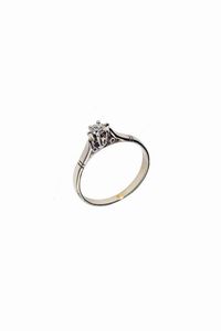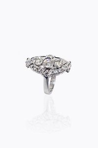 ANELLO Peso gr 8 Misura 13 (53) in oro bianco, sommità a losanga, con diamanti taglio brillante, di vecchio taglio [..]