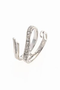 ANELLO Peso gr 4,6 MIsura13 in oro bianco, sommità a nastro, con diamanti taglio 8/8 per totali ct 0,15 ca