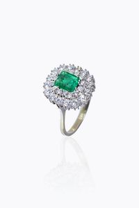 ANELLO Peso gr 7,3 Misura 23 (63) in oro bianco, al centro smeraldo taglio ottagonale a gradini di ct 1,50 ca, [..]
