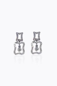 COPPIA DI ORECCHINI Peso gr 7,9 in oro bianco, con elementi geometrici quadrati sagomati e pendenti in diamanti [..]