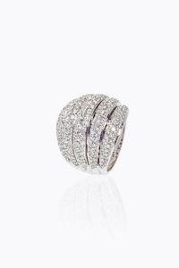 ANELLO Peso gr 21,3 Misura 16 (56) in oro bianco, sommità distinta in cinque fasce con pavé di diamanti taglio [..]