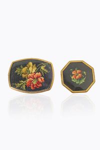 LOTTO DI DUE SPILLE in oro rosa a bassa caratura: -di forma ottagonale con ricamo floreale e vetro anteriore. [..]