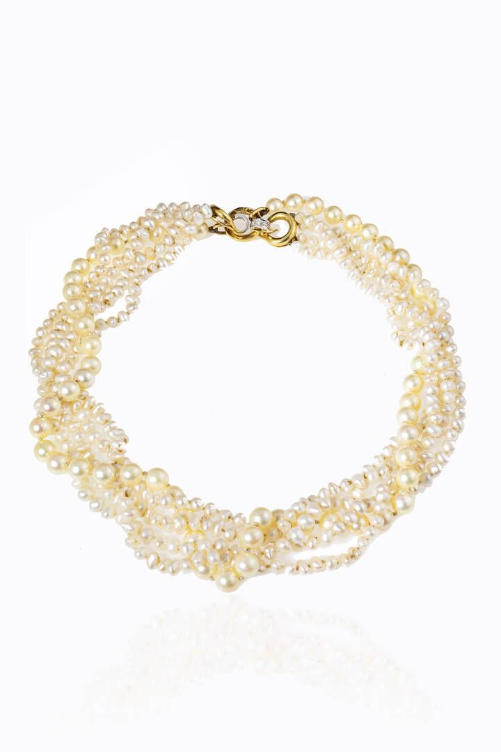 compost oda perle giapponesi e acqua di acqua dolce cipolline. Chiusura in oro giallo e bianco