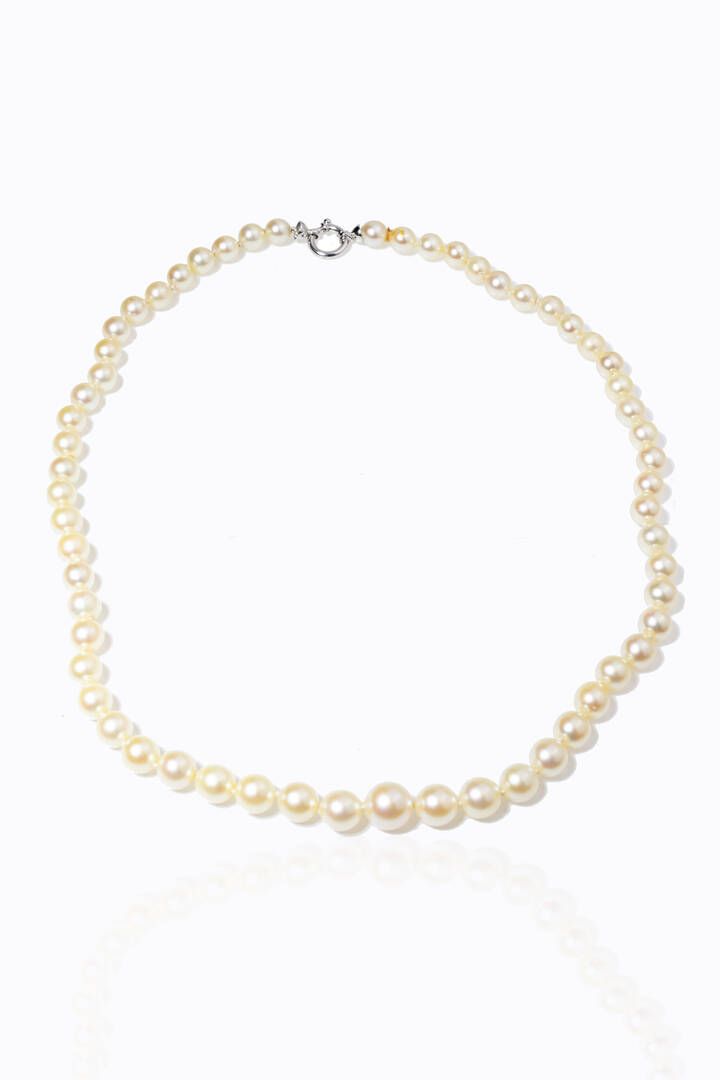 composto da un filo di perle giapponesi del diam. di mm 8,5 ai 10. Chiusura in oro bianco.