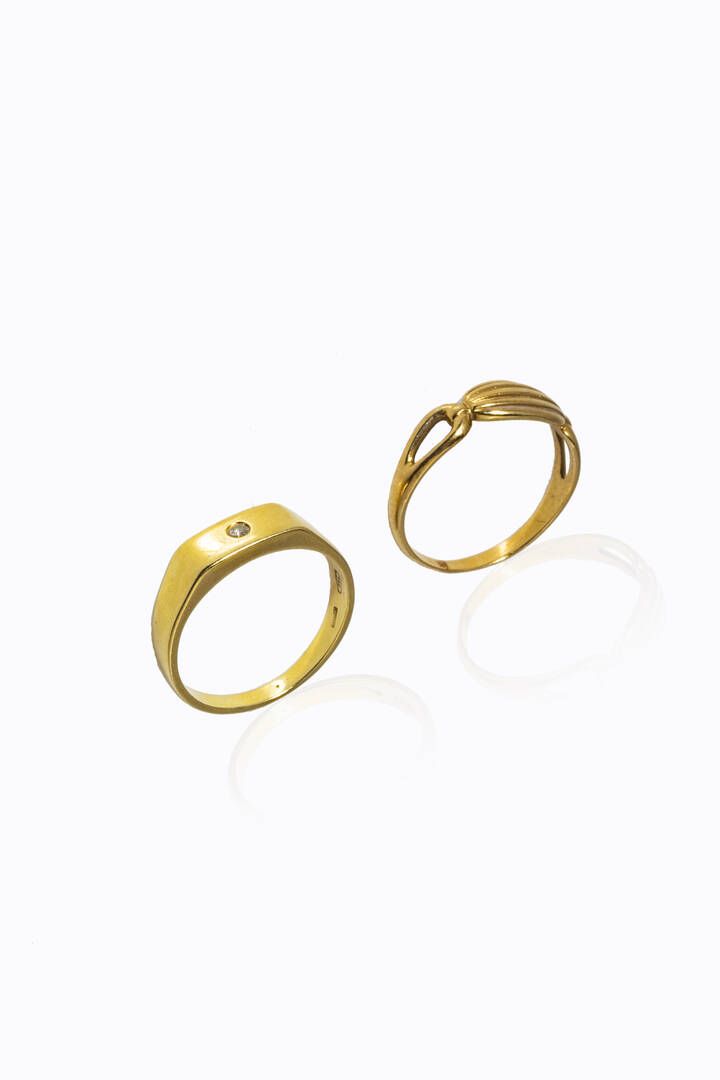 -in oro giallo, sommità piatta con piccolo diamante. Peso gr 3,1. Misura 12 (52)