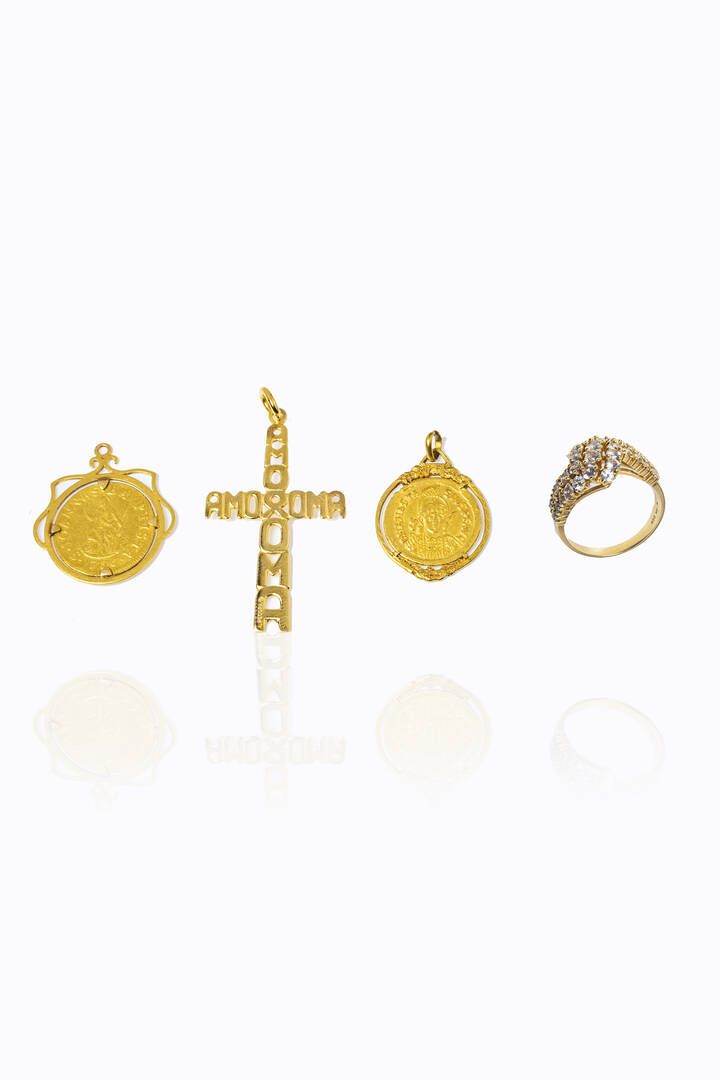 -ciondolo a forma di croce con la scritta 'Amore-Roma'. Peso gr 2,7