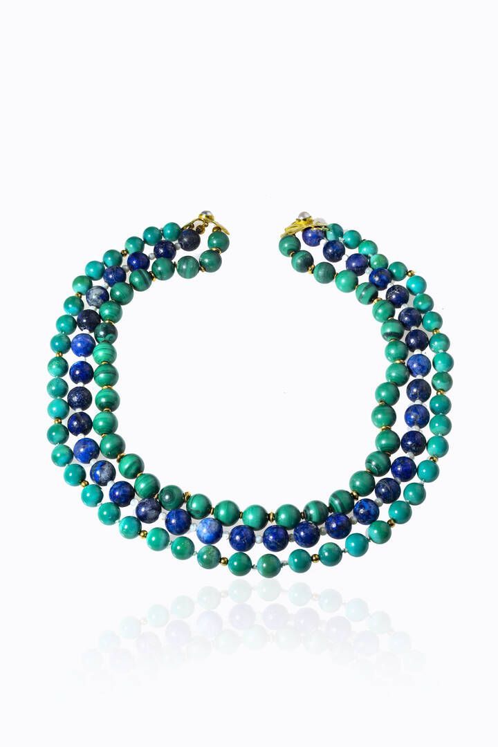composta da due file di sfere di malachite e di lapislazzuli del diam. di mm 10. Chiusura in oro giallo.