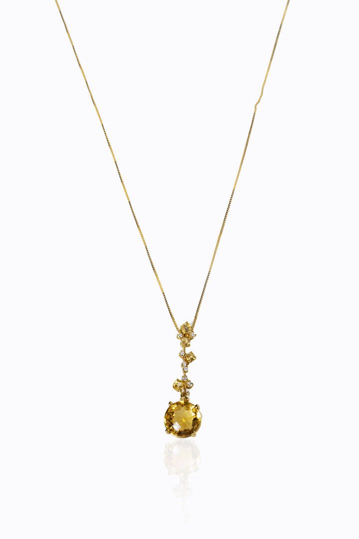 Catena con ciondolo in oro giallo, firmato 'Miluna', con quarzi citrini sfaccettati e piccoli diamanti taglio brillante per totali ct 0,07 ca