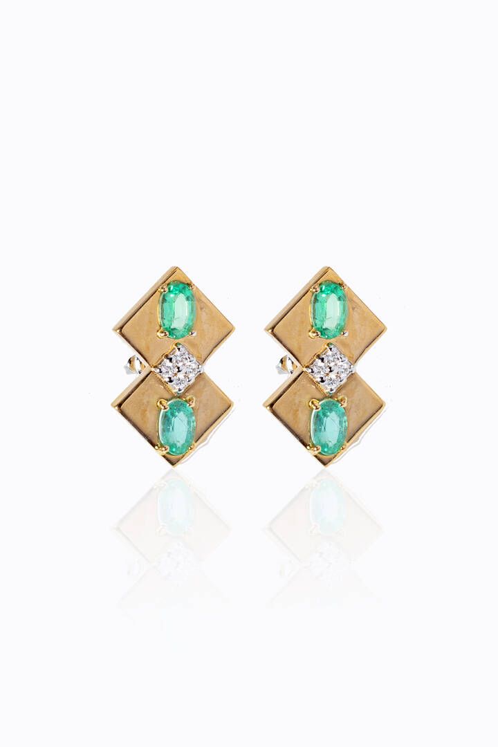 in oro giallo di forma geometrica, firmati 'Niali', con smeraldi taglio ovale per totali ct 1,50 ca e diamanti taglio brillante per totali ct 0,10 ca