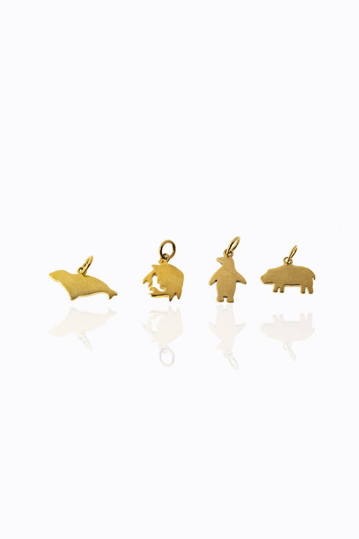Lotto di quattro charms firmati 'Pomellato', linea 'Dodo', a forma di foca, granchio, pinguino e maiale