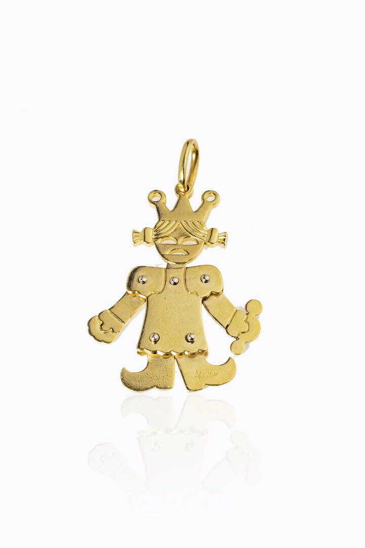 Ciondolo in oro giallo, firmato 'Pomellato', a forma di regina con testa ed arti mobili. Modello grande.