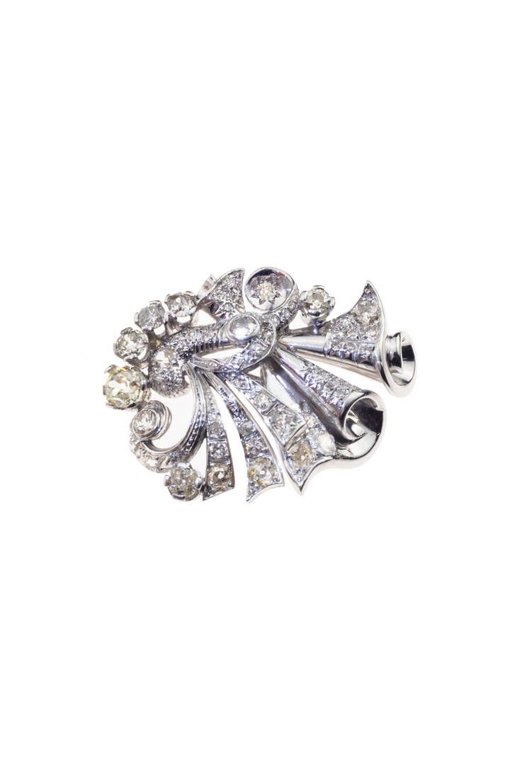 in platino, anni '30, a volute in diamanti taglio brillante di vecchio taglio e 8/8 per totali ct 4,0 ca