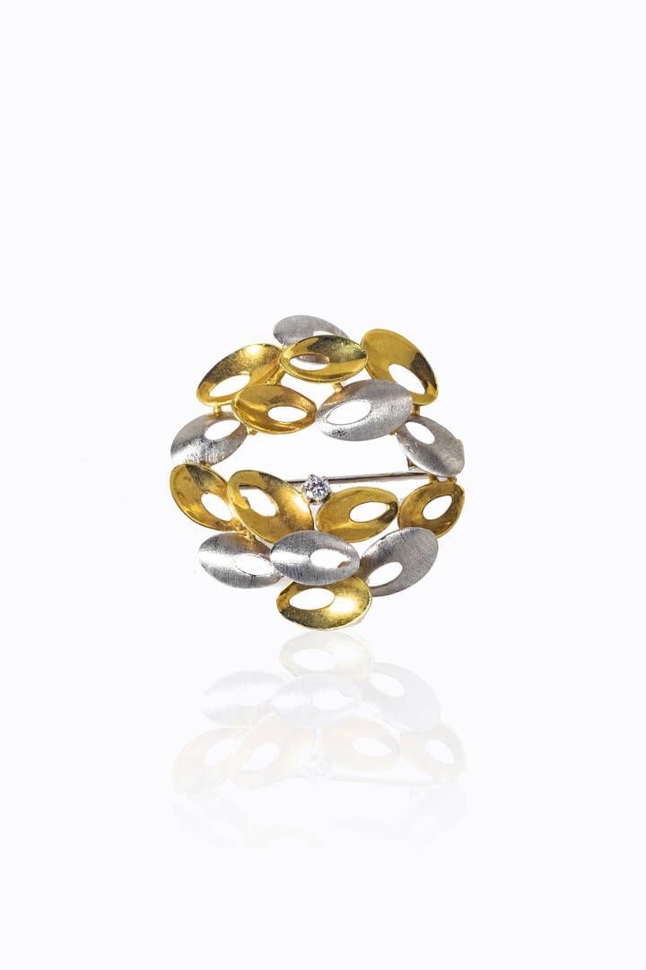 composta da ovali lucidi e satinati in oro giallo e bianco. diamante taglio brillante di ct 0,10 ca
